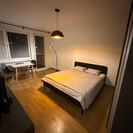 A fully furnished kitchen is provided at Peaceful Relaxation Apartment There is Stryko Burger serving American dishes 15 minutes on foot from the accommodation. The 38 m^2 apartment is right next to Svantnerova bus station.